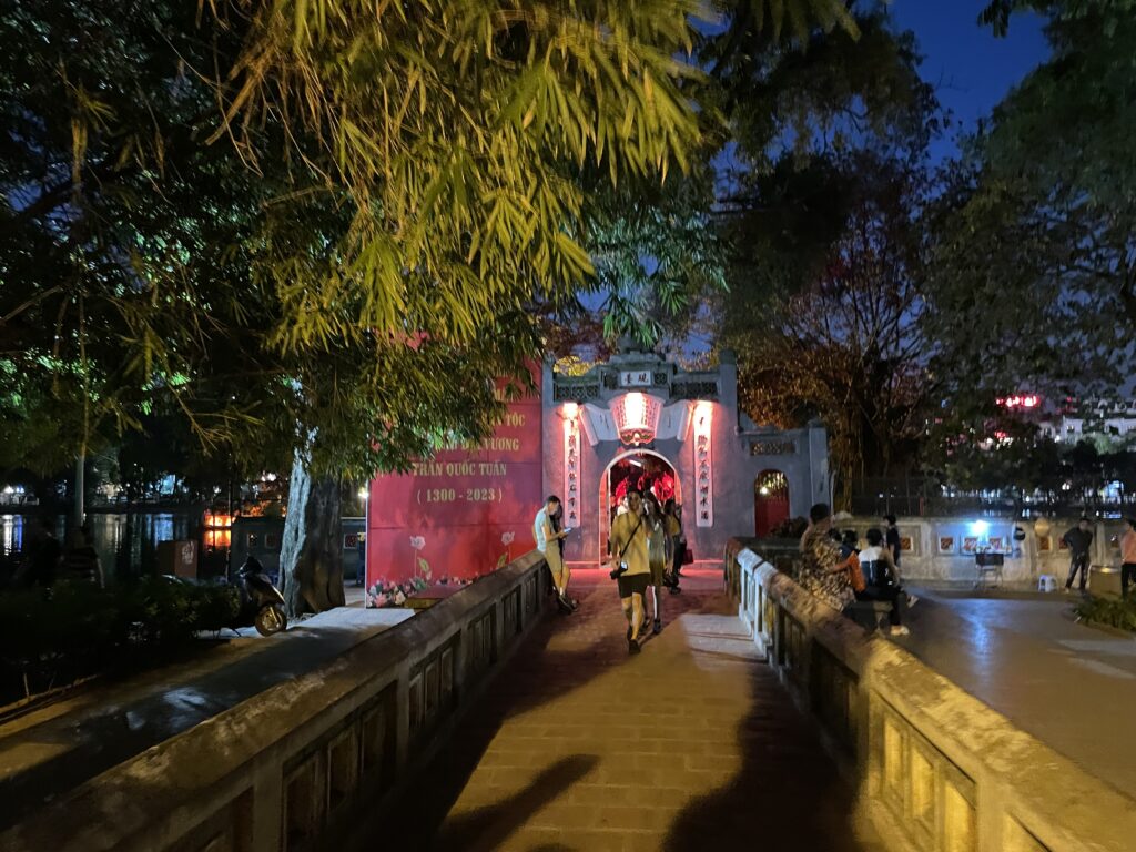 「ディンティンホアン通り」と「レタイトー通り」に囲まれた外周約1.8kmの湖です。上の画像は昼の湖の様子ですが、まめちちは夜に湖を散策しました↓
