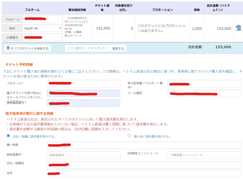 ベトナム鉄道のチケット購入方法は主に① 現地の駅の窓口で直接購入する ② 代理店のホームページから購入する ③ 公式ベトナム統一鉄道ページから購入する の3通りになります。②は代理店のマージン分高くつくのでお勧めしません。①は電車の出発直前に駅に行っても埋まっていることが多くおすすめできません。1番安く、先の予定を立てやすい③公式ホームページからの予約がおすすめです。